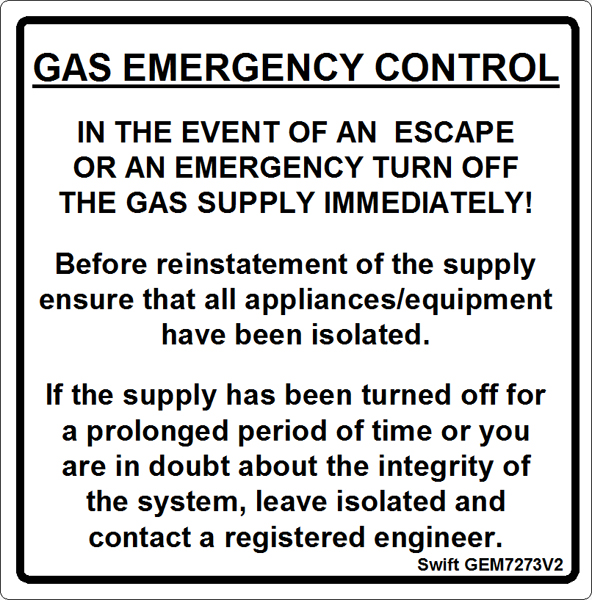 100 Swift GEM7273V2 GAS EMERGENCY CONTROL labels