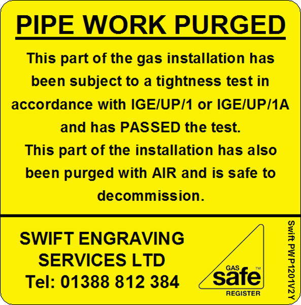 Personalised PIPE WORK PURGED Label.