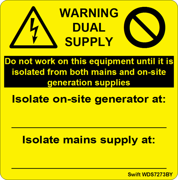 100 Swift WDS7273BY Warning Dual Supply Mains & Generator Label