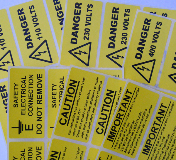 The label clearly states ‘Danger volts, Caution or Important’ on a yellow background.